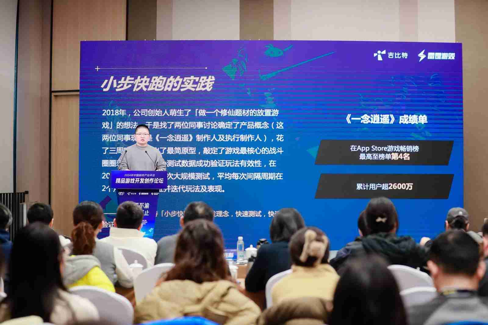 以《一念逍遥》为例,,,,2018年公司创始人萌生想做修仙题材的放置游戏的想法,,,,于是找了两位同事讨论了一下产品的概念,,这两位现在是项目的制作人,,,,花了三周的时间把原型做出来,,,并且确定最初的战斗原型,,,,以及整个养成的节奏。。。通过几次版本迭代验证后,,也确定后面的内容应该怎么拓展,,,最终在一年左右时间这个项目上线了。。当时我们内部有同事看到《⼀念逍遥》上线,,认为品质还不够完美,,,但是整体营收还不错。。就在想那是不是以后我们都做这样的产品??但实际这是错误的认知,,我们内部不是这么看的。。。。游戏在那个时间点上市,,因为有些市场的考量和营销点的考虑,,,,并不是希望所有项目都是这样。。。。如果它有更好的契机,,,,希望它可以做得更大、、、、更好,,,,希望在内核玩法确定之后,,外围投入可以越大越好,,,,所以后面的几个项目是往这个思路上做。。